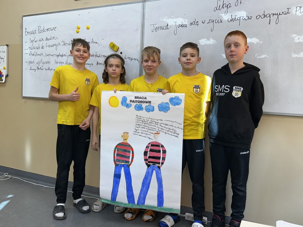 Podczas omawiania lektury „Chłopcy z Placu Broni” uczniowie klasy V połączyli polonistyczną wiedzę z kreatywnością plastyczną. Efekt? Kolorowe plakaty przedstawiające bohaterów powieści!